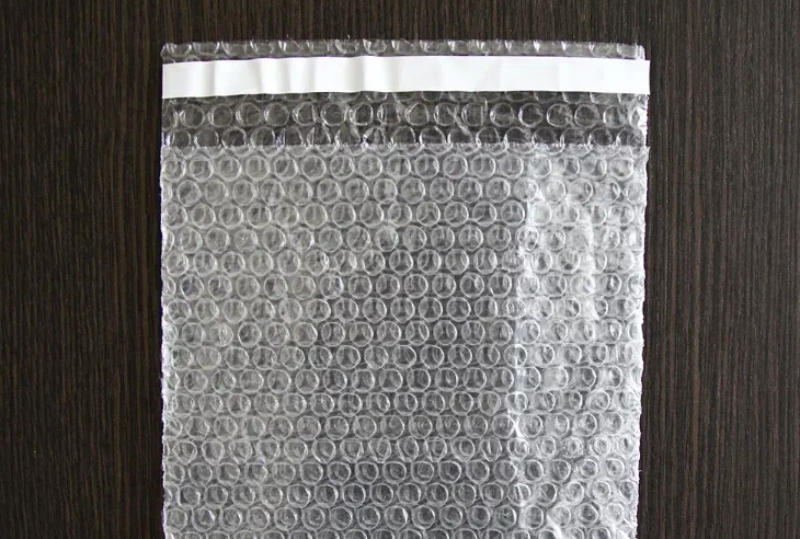 Двухслойные и трехслойные пакеты из воздушно-пузырчатой пленки с клеевым клапаном собственного производства.
